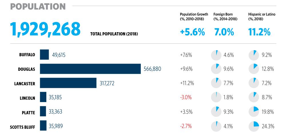 11 Nebraska Department of Economic Development and Nebraska Department of Agriculture, “Nebraska Exports,” using U.S. Census Bureau and U.S. Department of Agriculture’s Foreign Agricultural and Economic Research Services, updated October 10, 2019, https://opportunity.nebraska.gov/research/nebraska-exports/.